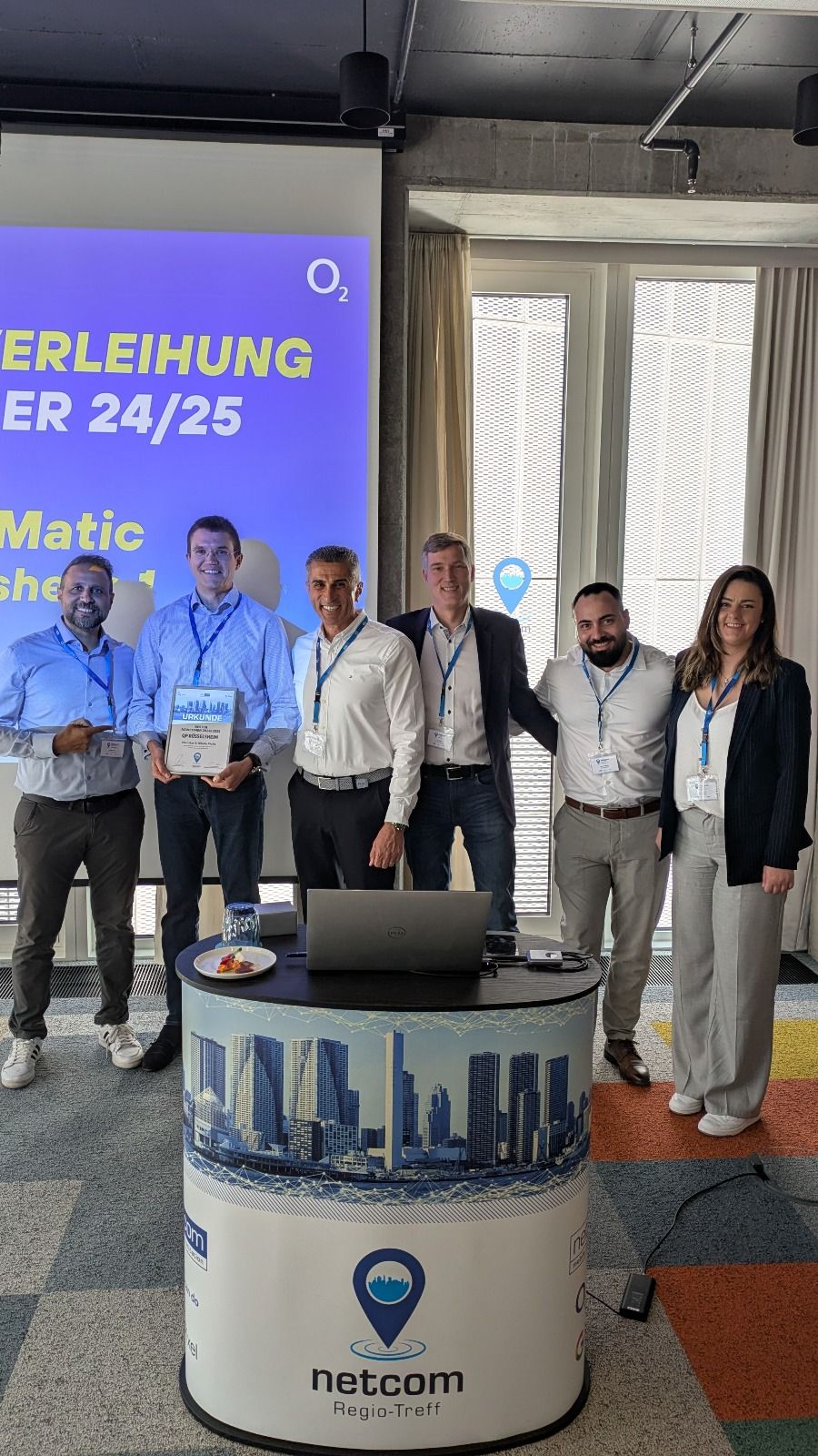 Beim diesjährigen netcom Regio Treff in Frankfurt am Main wurde unser Unternehmen von Telefónica und netcom mit der Auszeichnung „Bester Newcomer 2024/2025“ geehrt.